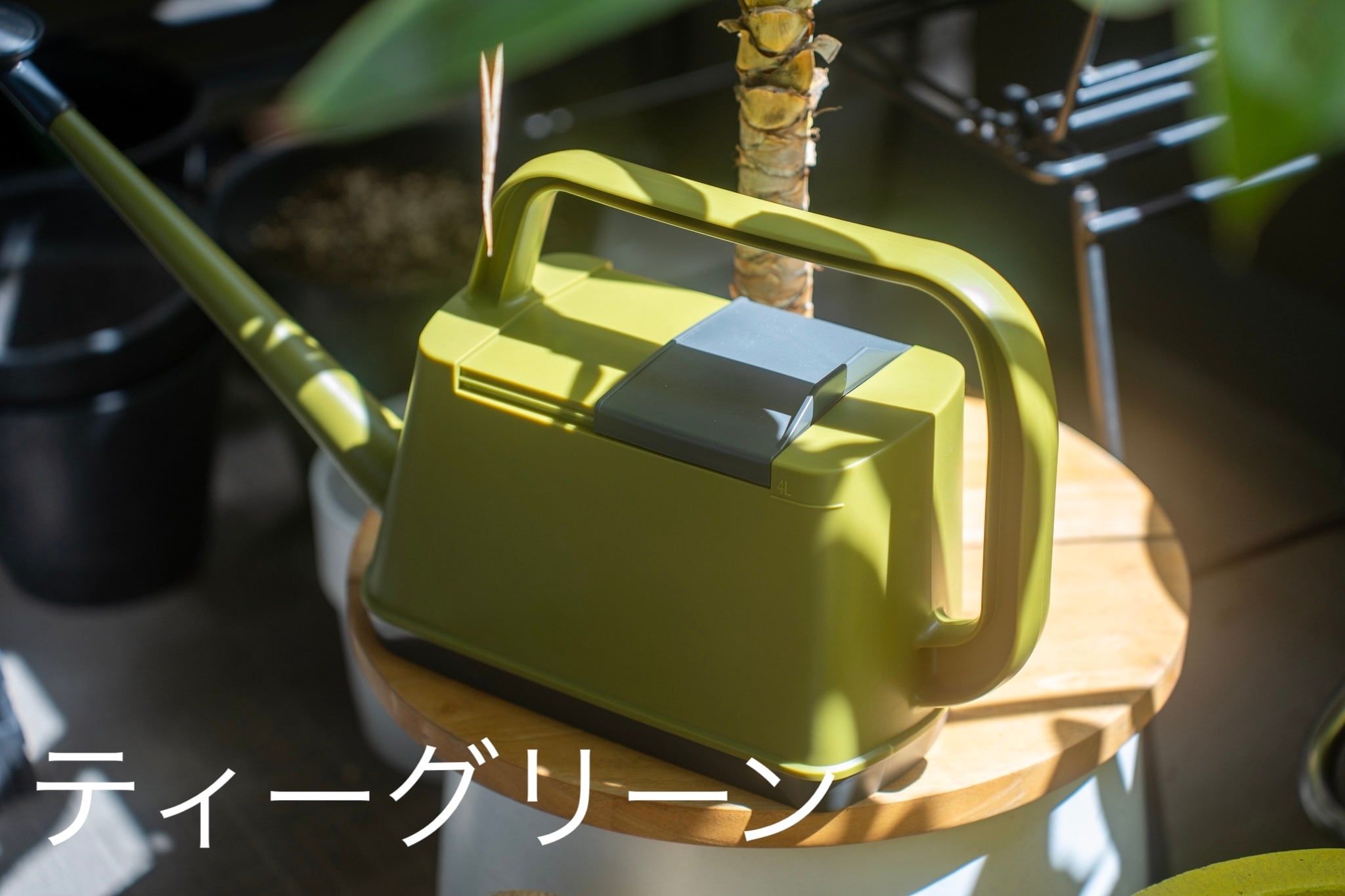 4Lは、満タン時、片手でも扱える程の絶妙な容量、満水から水が無くなるまで約1分間放水が続くので、ある程度の鉢数をカバーしてくれます。