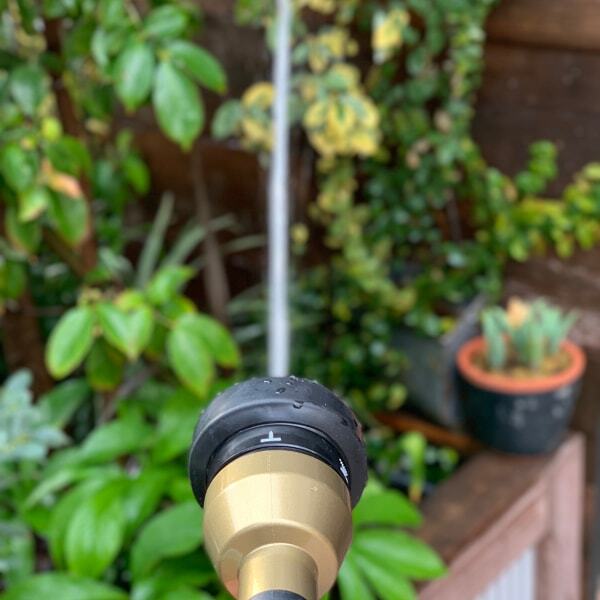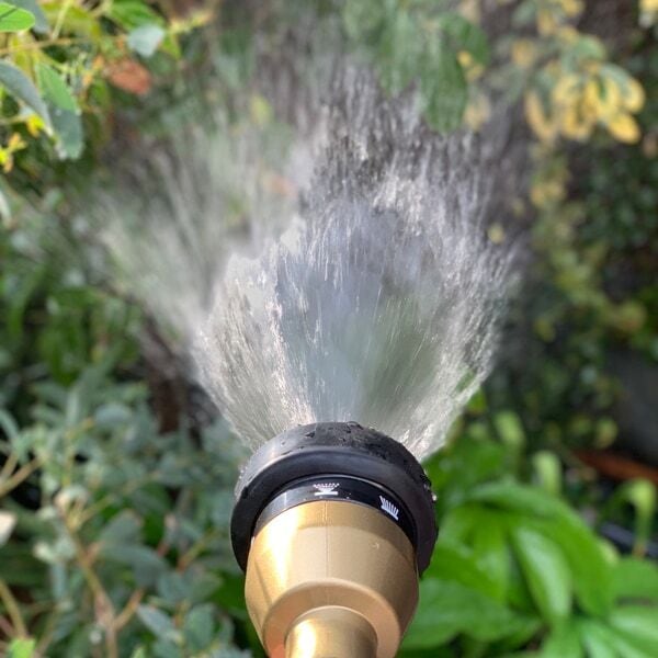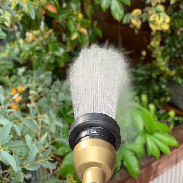 ノズルは丈夫な金属タイプで、水の出方は4パターンに切替えが出来るため、用途に合わせてご使用いただけます。軟らかく優しい水当たりが植物への水やりに適しています。