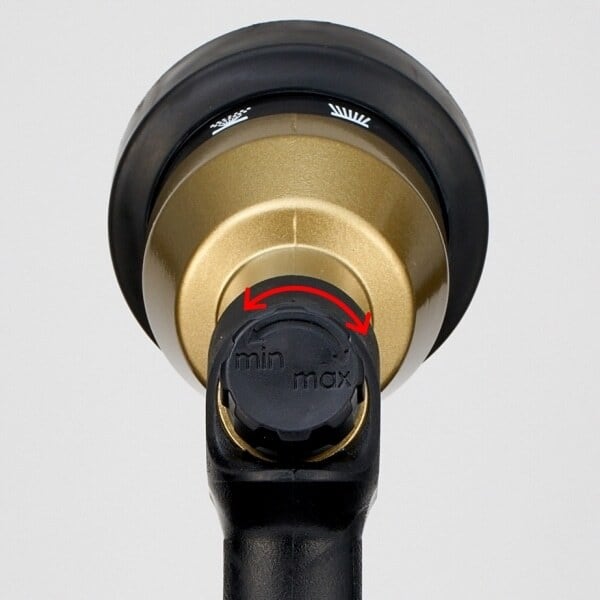 また、手元で操作できる水量調整ダイヤルが付いており、強弱を調整できます。鉢植えやデリケートな植物へ水やり、水やりによる土はねを防ぎます。